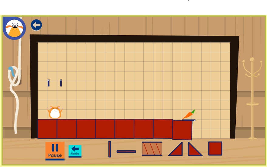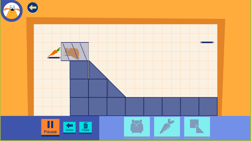 The younger children playing this game, are just starting to learn their shapes and how-to problem solve, so this game allows them to recognize and use the shapes at an introductory level. Whereas the older students are more familiar with shapes and problem-solving, so the first few levels of this game may serve more as practice. After the first few levels, the levels will begin to get harder and more challenging for the students. They will even be able to create and design their own challenges. Here, the game can be applied to standard 3-5. DT. 2.b: Plan and implement a design process: identify a problem, think about ways to solve the problem, develop possible solutions, test and evaluate solution(s), present a possible solution, and redesign to improve the solution. The standard is very similar just with slight degrees of difficulty. Comparably, the game is the same for every grade, but the difficulty changes as the students improve their skills and are able to complete higher levels or even create their own. When the older students select “Create,” they have the opportunity to build their own challenges to see if the hamster can get their carrot. The picture below shows what the screen looks like when the student chooses “Create.” Not only does the player get to create a pathway, but they also get to create the problem by choosing where they want to place the hamster and carrot.